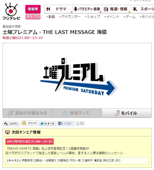 フジとはもう関わりたくないって言ってたのに来週土曜のフジ土曜プレミアムで2週連続海猿やるのか、TVの放映は良いのかなと思ったら